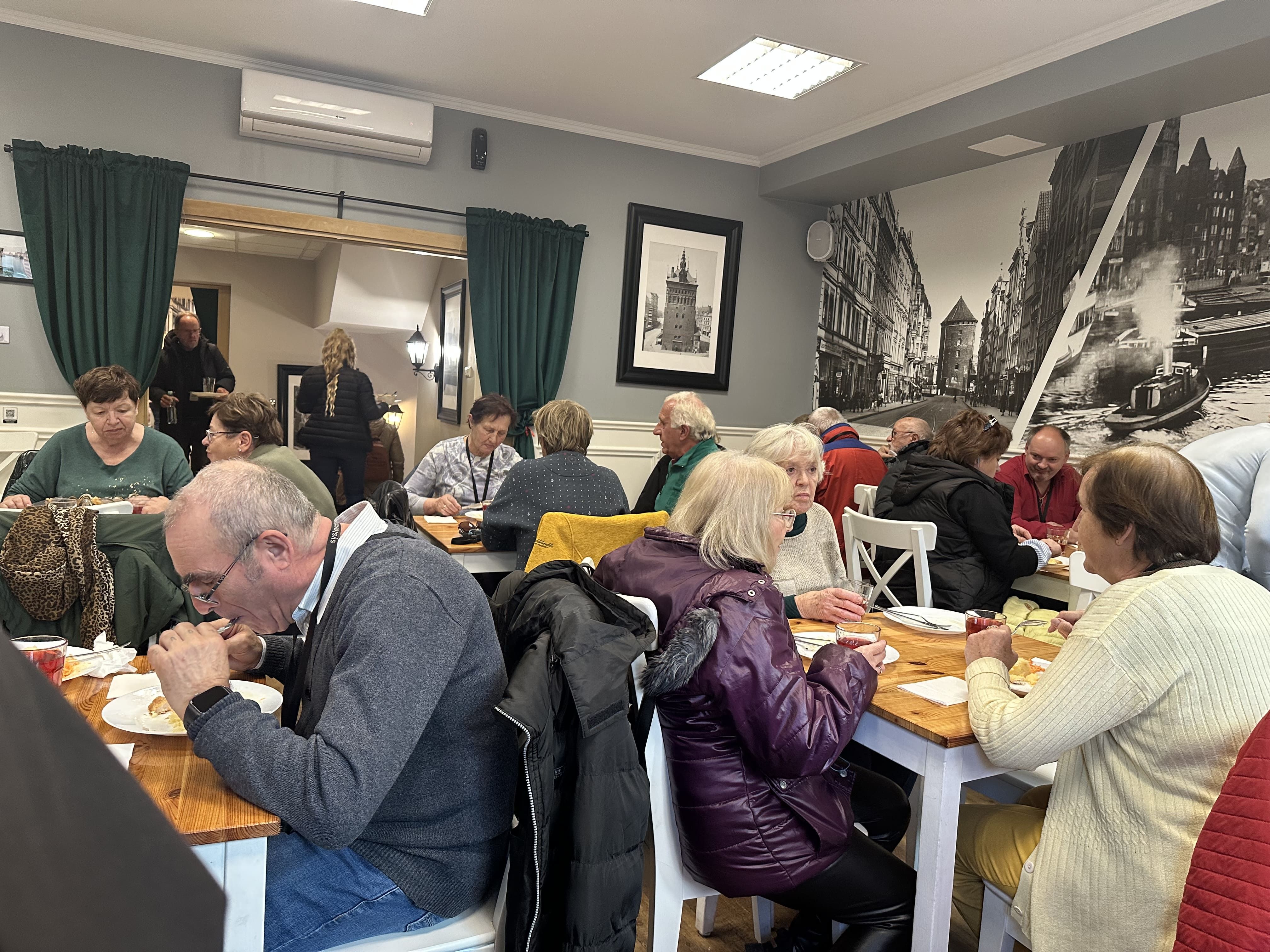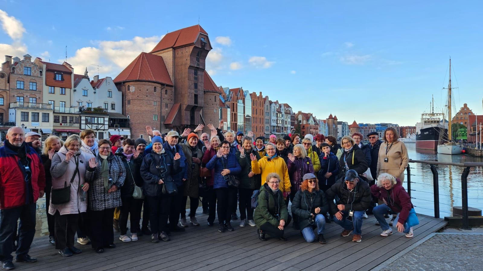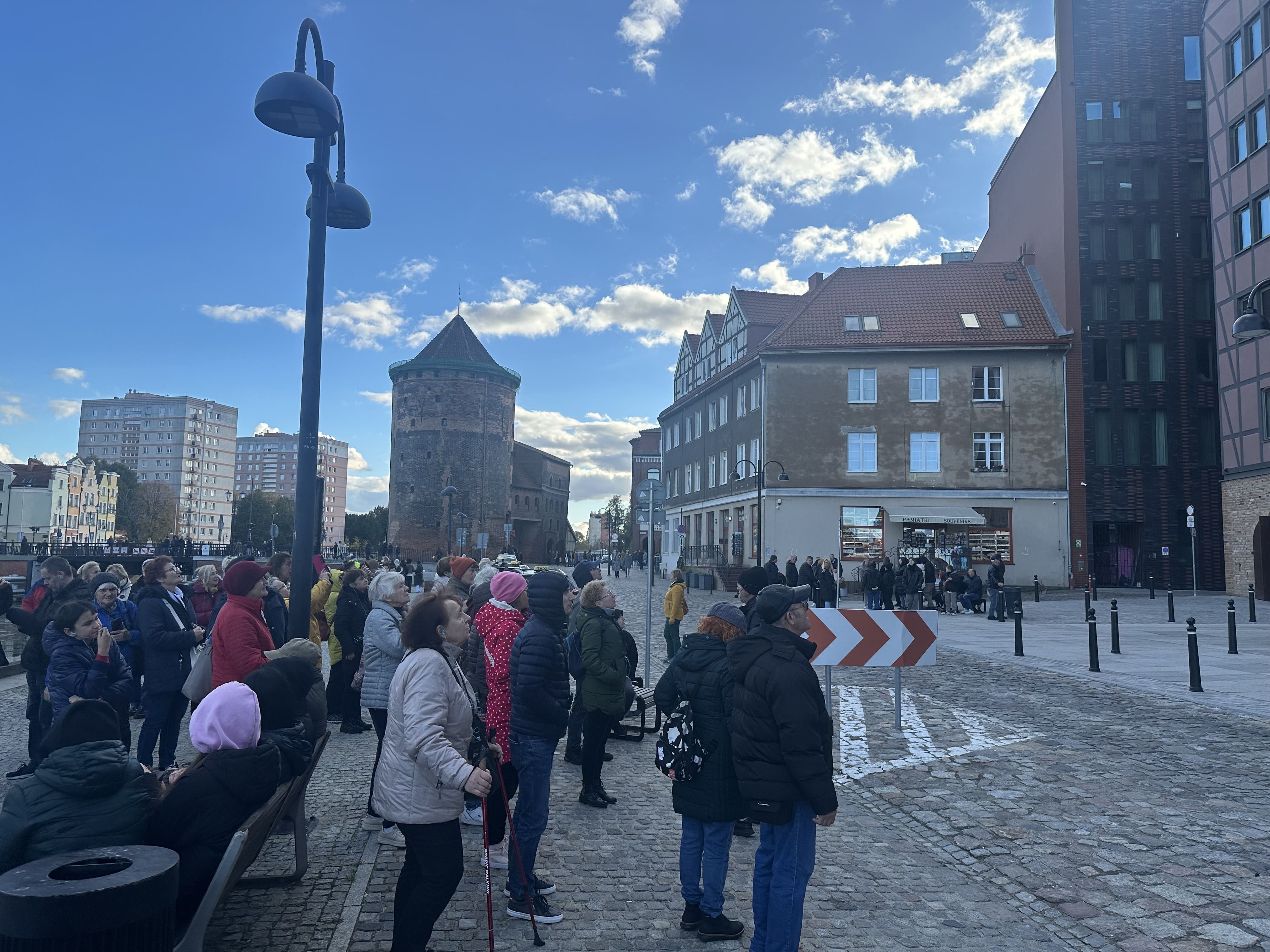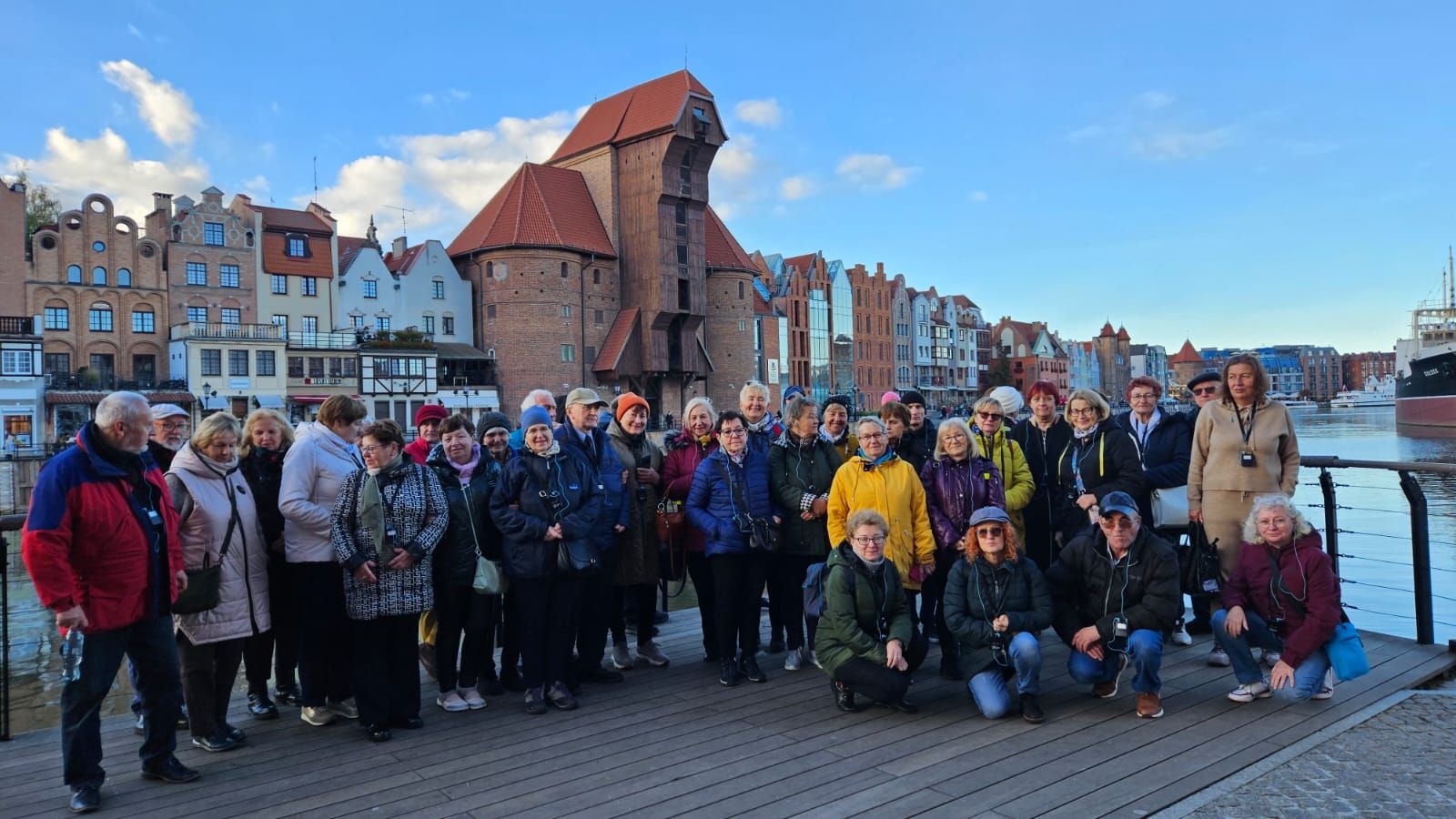W trzecim dniu pielgrzymki spacerowaliśmy razem z przewodnikiem p. Arkiem po starówce gdańskiej. Spacer rozpoczęliśmy od Wyspy Spichrzów. Jeszcze 20 lat temu ta część Gdańska była zaniedbana, a kto się tam zapuszczał, mógł oberwać po głowie lub narazić się na opróżnienie zawartości kieszeni lub torebki. Spacer tylko na własną odpowiedzialność.